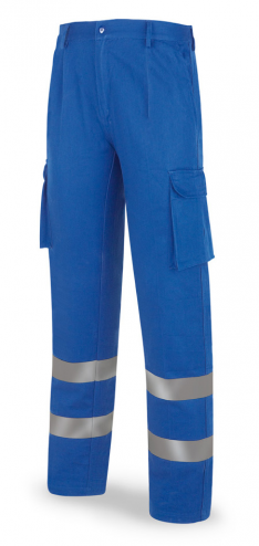 Pantalón azulina algodón 245 g. con bandas reflectantes.